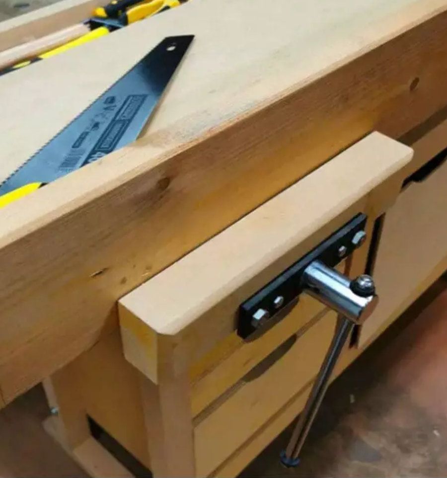 Enfin, il est équipé d'une presse d'ouverture 170 mm, élément indispensable du menuisier, elle stabilise la pièce lors du pressage. La presse avant horizontale est composée d'une mâchoire en bois et de vis en acier diamètre 18 mm double guidage.