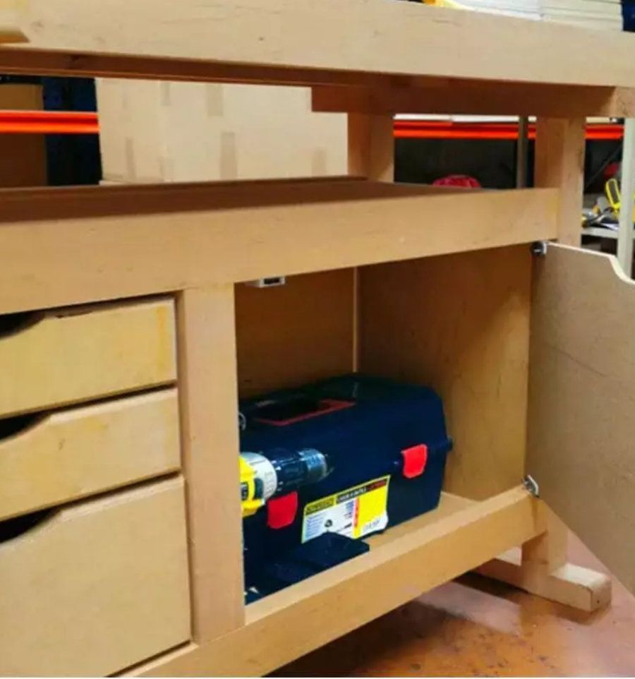 L'espace de travail est conçu pour les professionnels afin de vous accompagner dans le bricolage, la construction ou le stockage d'outils. Composée d'un plateau en bois multiplis d'épaisseur 25 mm, de 4 tiroirs, d'une armoire et d'un espace de rangement sous plateau, il est pratique et robuste.
