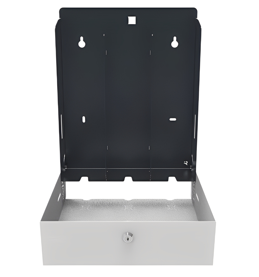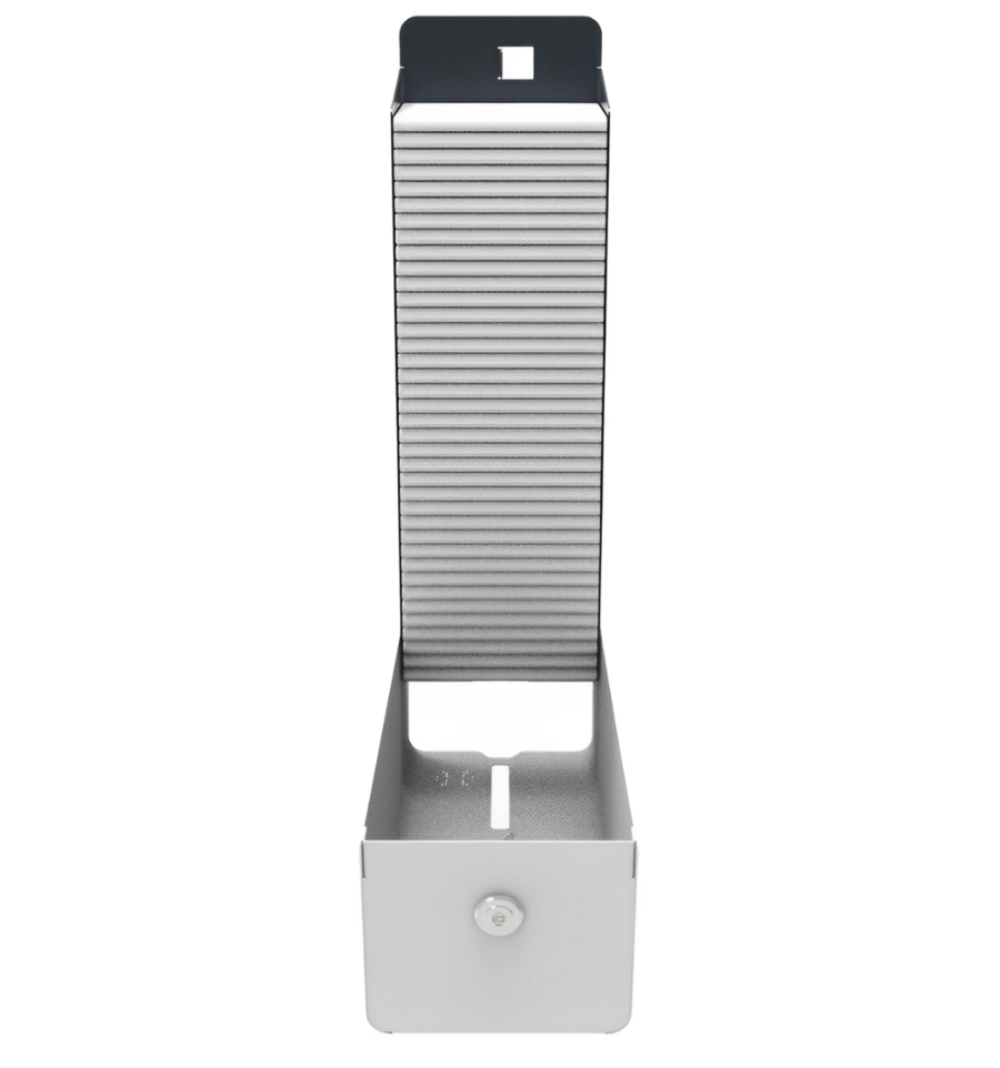 Afin d’ouvrir et de fermer votre distributeur de serviette hygiénique, un système de verrouillage par clé est mis en place. Celui-ci empêche les ouvertures indésirées et sécurise votre équipement. Une fois la façade ouverte, vous pouvez procéder au remplissage qui se fait frontalement.