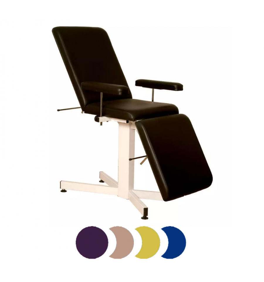 Notre fauteuil de soin esthétique est disponible en version hauteur fixe (75 cm) ou variable (de 62 à 77 cm). Polyvalent et économique, il est idéal, notamment pour les esthéticiennes car ses 3 parties inclinables permettent d'adopter des positions répondants aux besoins des praticiens.