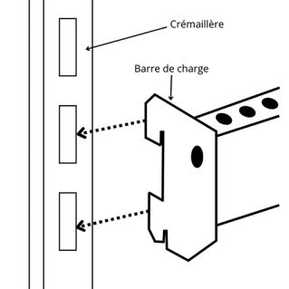 La barre de charge est fixée en insérant ses extrémités dans les trous de la crémaillère. Assurez-vous régulièrement que la barre de charge est solidement fixée à la crémaillère pour éviter tout risque de chute.
