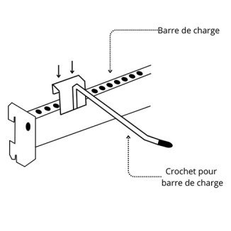 Une barre de charge pour gondole est une alternative à la gondole à fond perforé. C'est un accessoire conçu pour s'installer sur les crémaillères de la gondole dans le but d'ajouter et de soutenir d'autres accessoires.