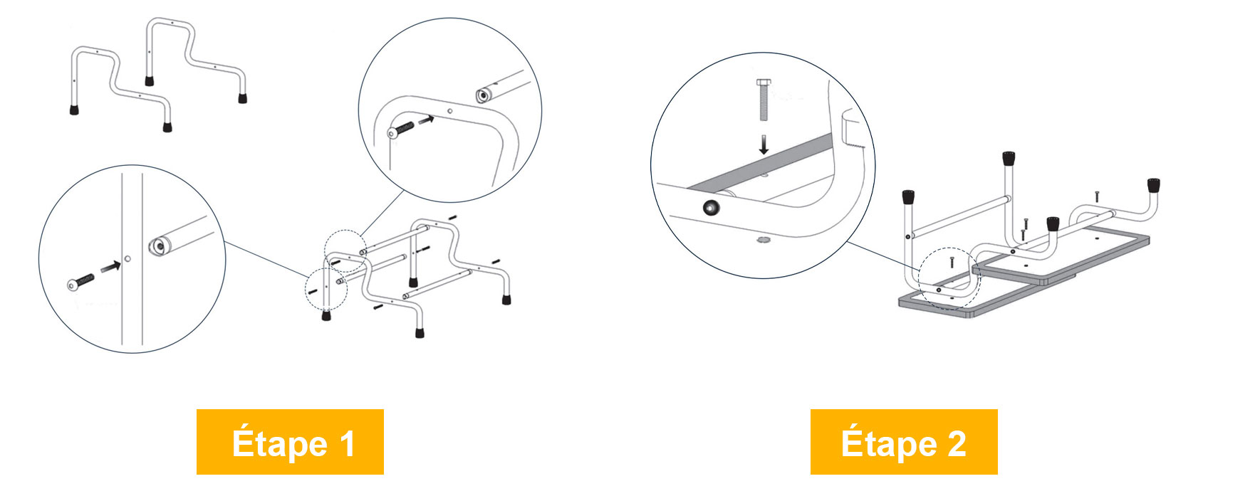 - Tout d'abord, il convient de visser les différents tubes d'acier entre eux afin de former la structure du marchepied.