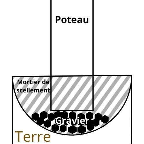 - Aplanir le gravier et insérer la base des poteaux dans le trou.