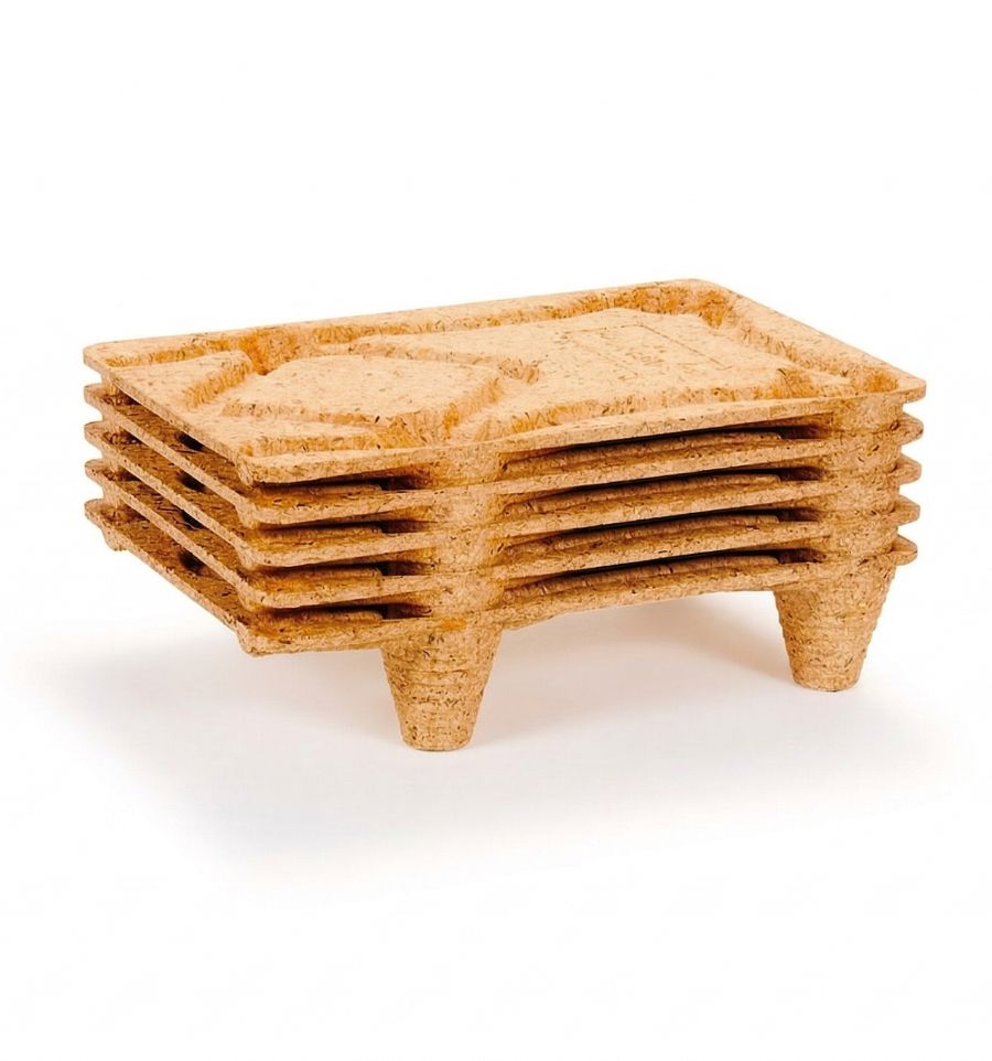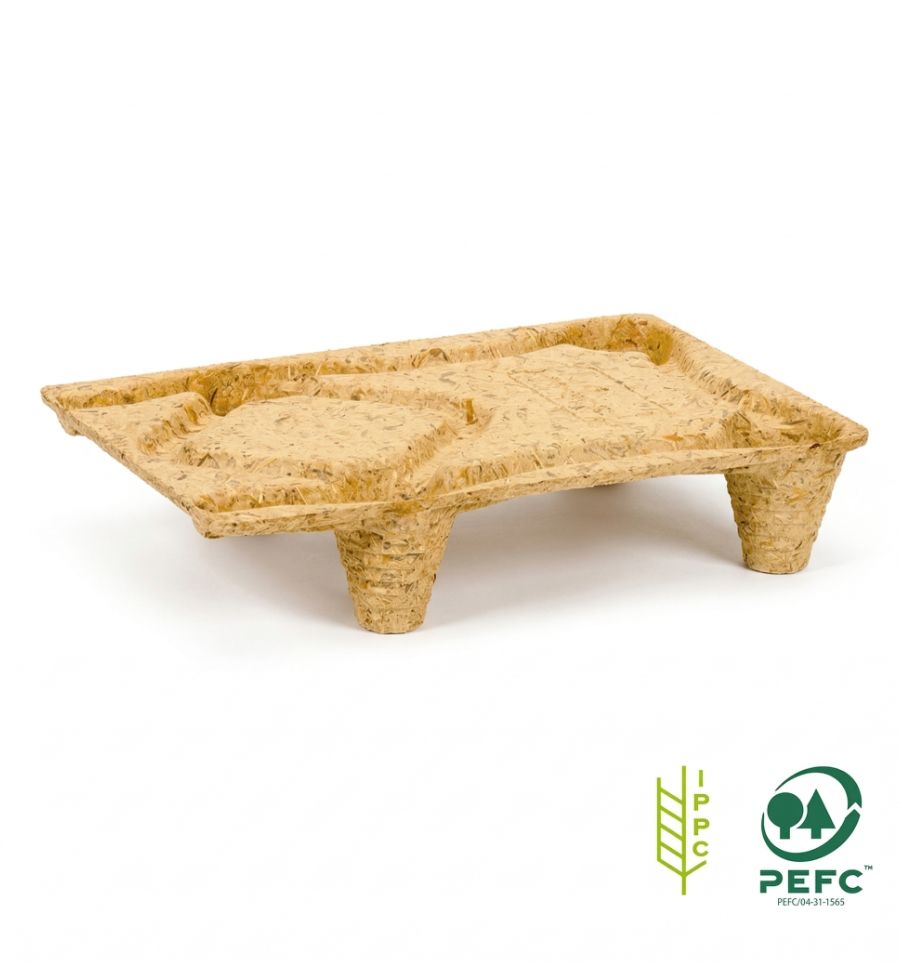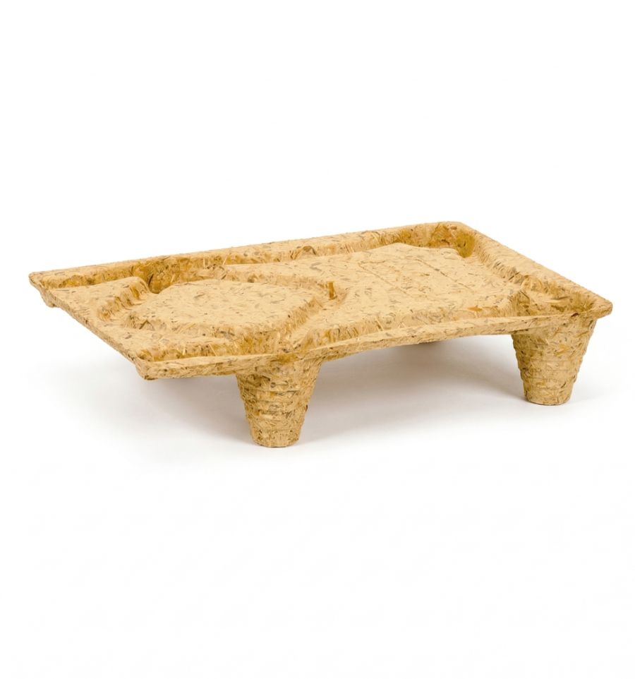 Fabriquée à partir de bois recyclé, cette petite palette moulée est ultra-légère et biodégradable.