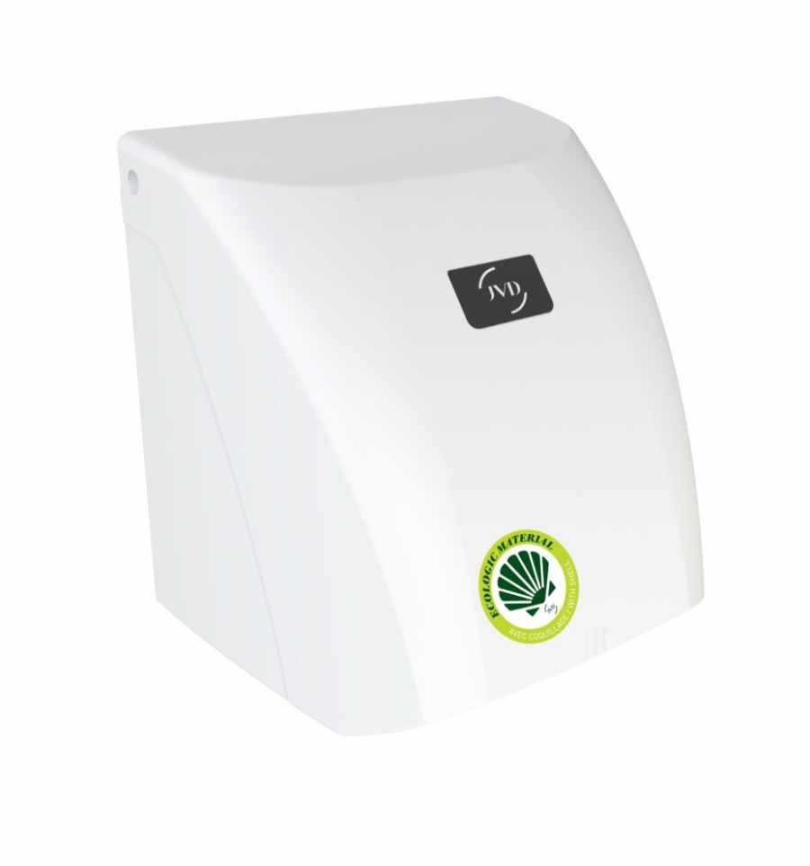 L'appareil peut être fabriqué en plastique ABS et polycarbonate (modèle classique) ou en bioplastique (modèle blanc avec cette mention). Cette fabrication française avec ces matériaux rend le sèche-mains JVD Zephyr résistant au vandalisme et aux environnements humides.