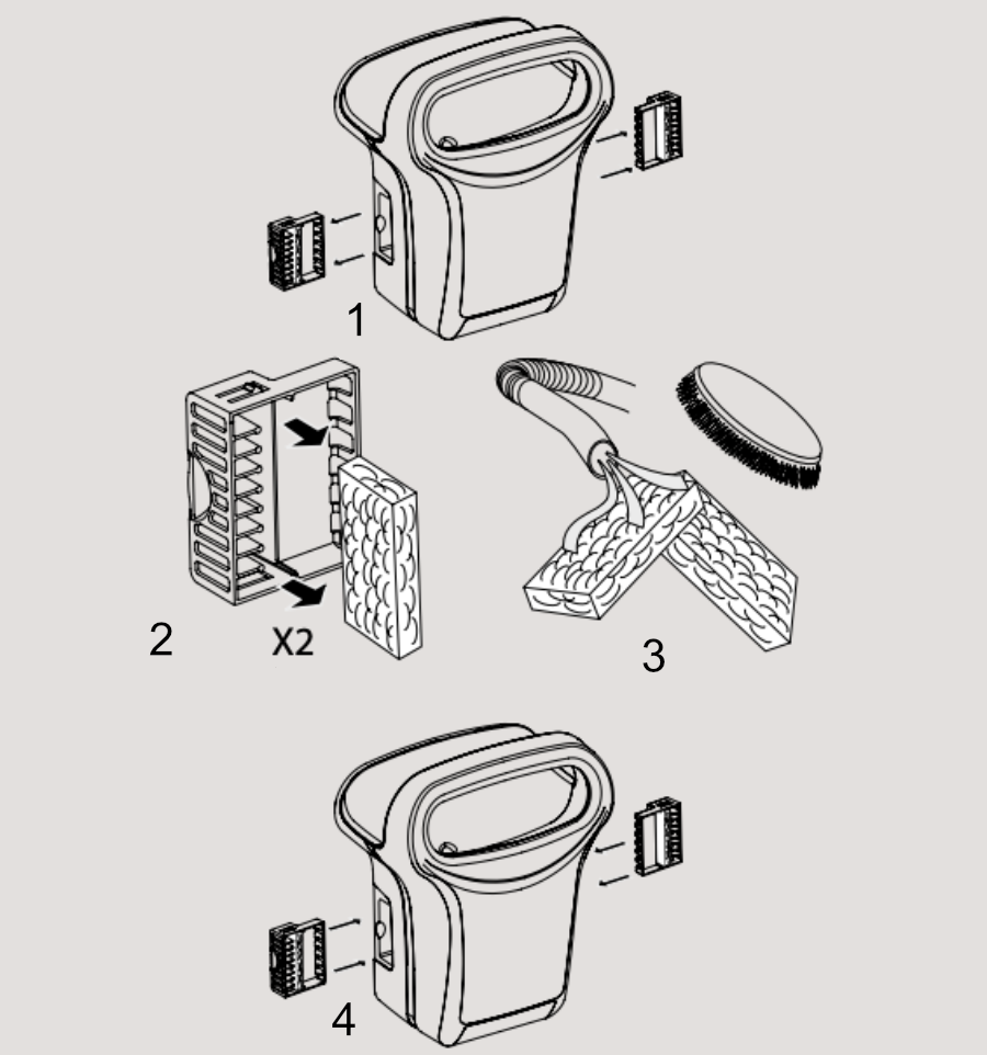 Son filtrage antibactérien apporte une hygiène totale qui doit être entretenue toutes les semaines. Pour les modèles d'Exp'air et Stell'air, il faut tirer les 2 supports de filtre par les languettes présentes sur les côtés des appareils. Il faut ensuite retirer les 2 filtres et les nettoyer avec une soufflette, en les frottant avec une brosse afin d'enlever les poussières. Par la suite, vous devez replacer les filtres propres dans les supports et les remettre dans l'appareil jusqu'à entendre un clip de fermeture.