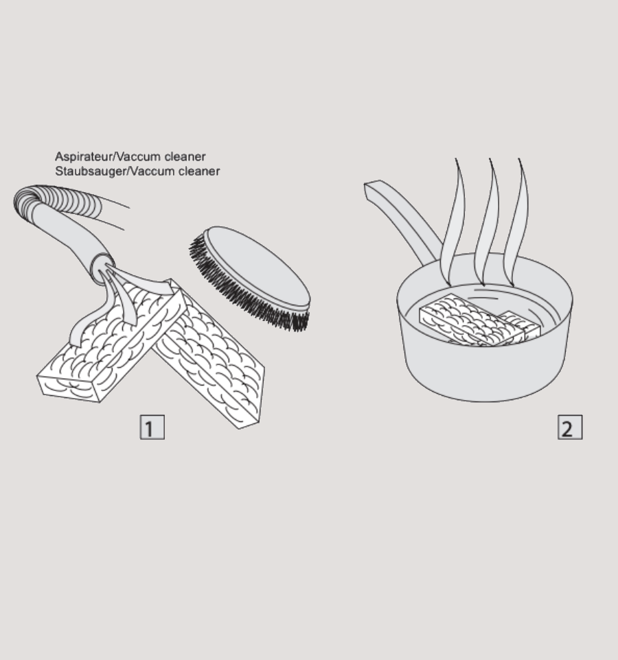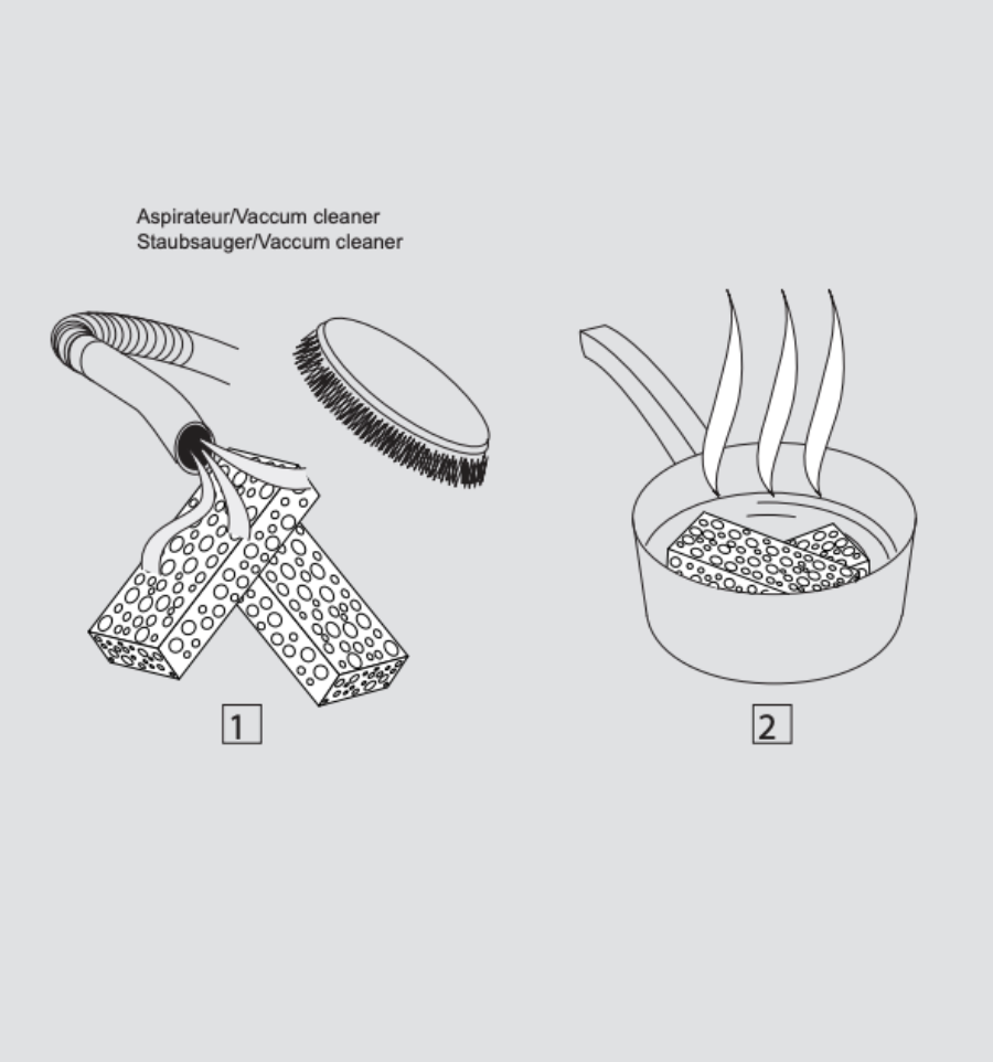 Pour un nettoyage plus approfondi, vous pouvez une fois par mois les mettre dans une casserole et les faire bouillir avec une cuillère à soupe d'acide citrique, de vinaigre ou de sel. Puis les remettre dans l'appareil une fois sec. Des images sont à votre disposition si besoin.