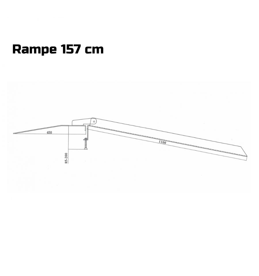 - Rampe 157 cm : la rallonge fixe mesure 110 cm et la rallonge qui se déplie mesure 45 cm.