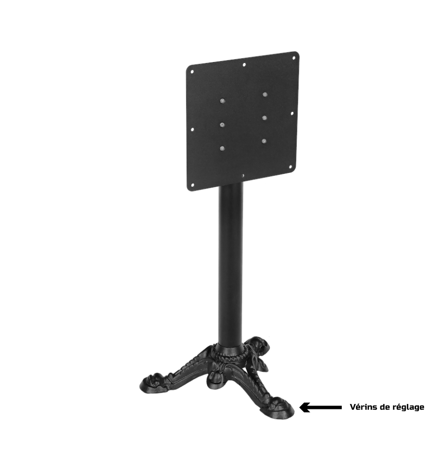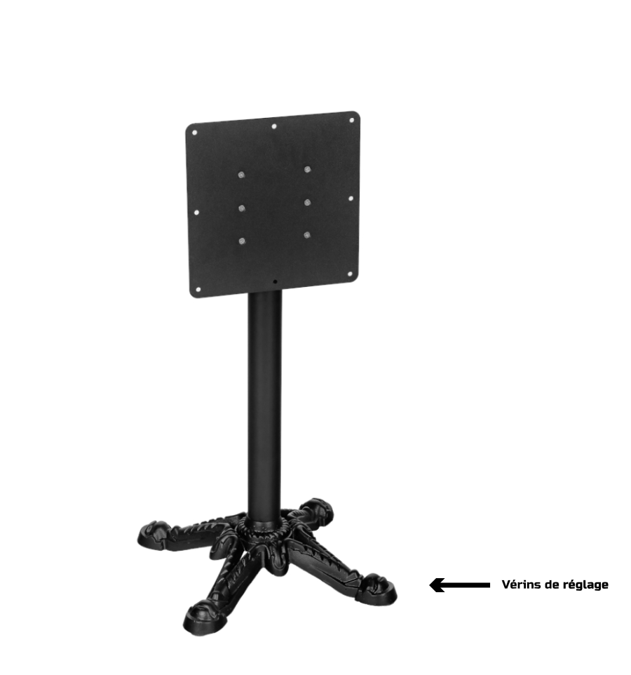 En fonction de la configuration de votre terrasse ou de votre espace, vous pourrez choisir entre des pieds de table brasserie à 3 ou à 4 branches. Si vous devez installer vos tables sur un sol instable, comme des pavés, le modèle à 3 branches est recommandé, car il offre une meilleure stabilité sur les surfaces irrégulières.