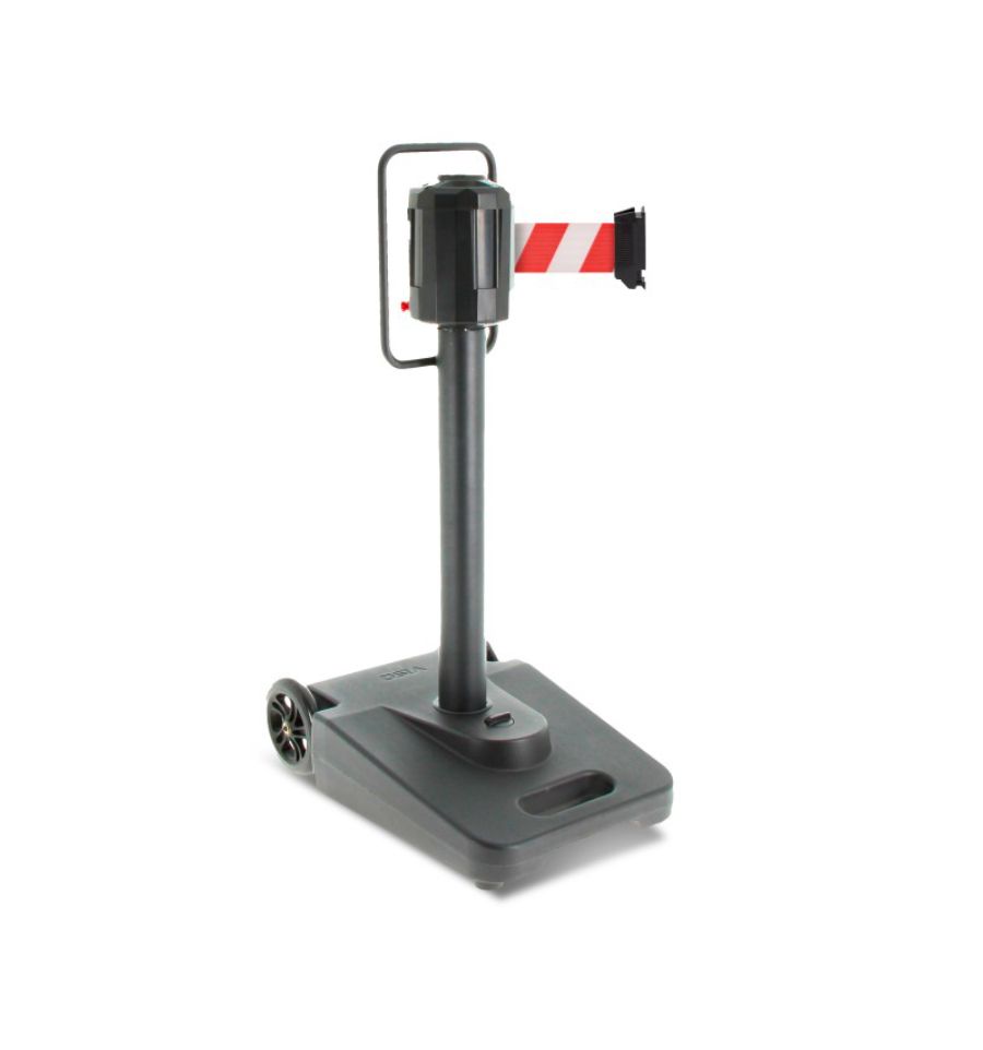 Le poteau de guidage à roulettes d'une hauteur de 1100 m est l’outil idéal pour une gestion efficace des files d’attente et de délimitation d’espace dans les zones de passages comme les gares, les aéroports, dans les parkings, les musées lors d’évènements.
