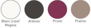 4 coloris disponibles pour la structure : Blanc craie, ardoise, prune ou praline.