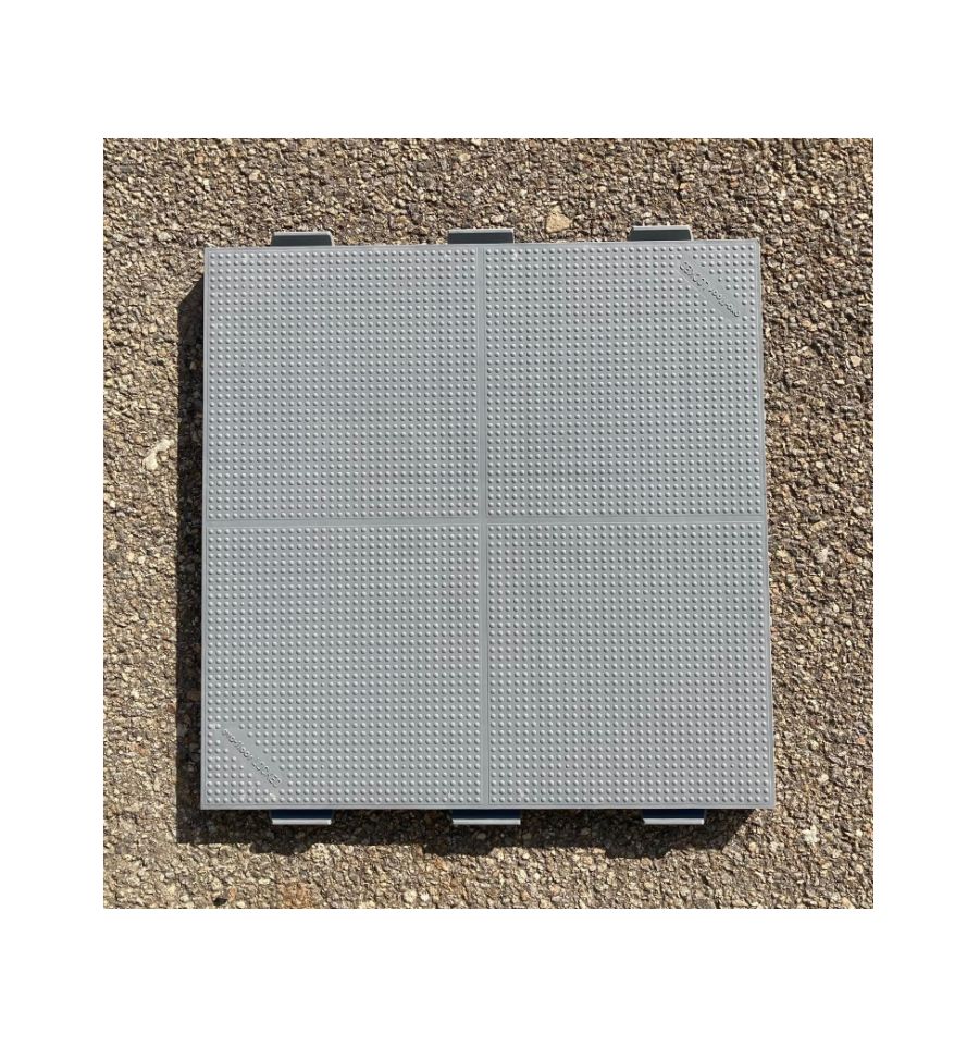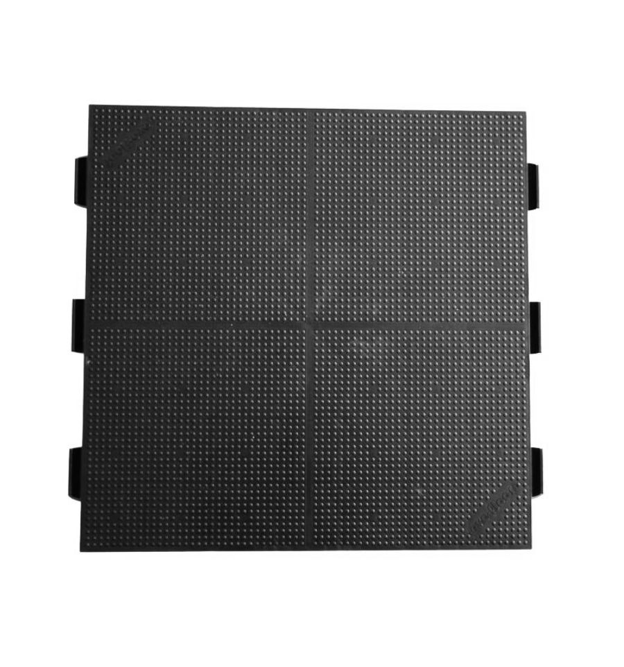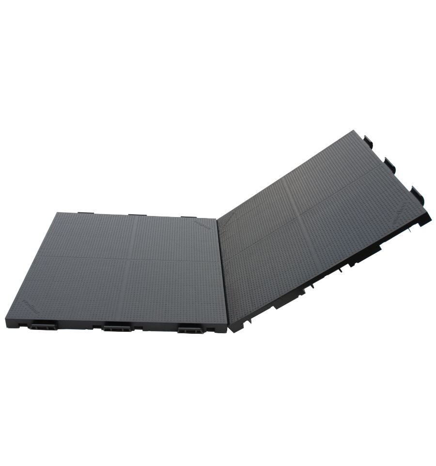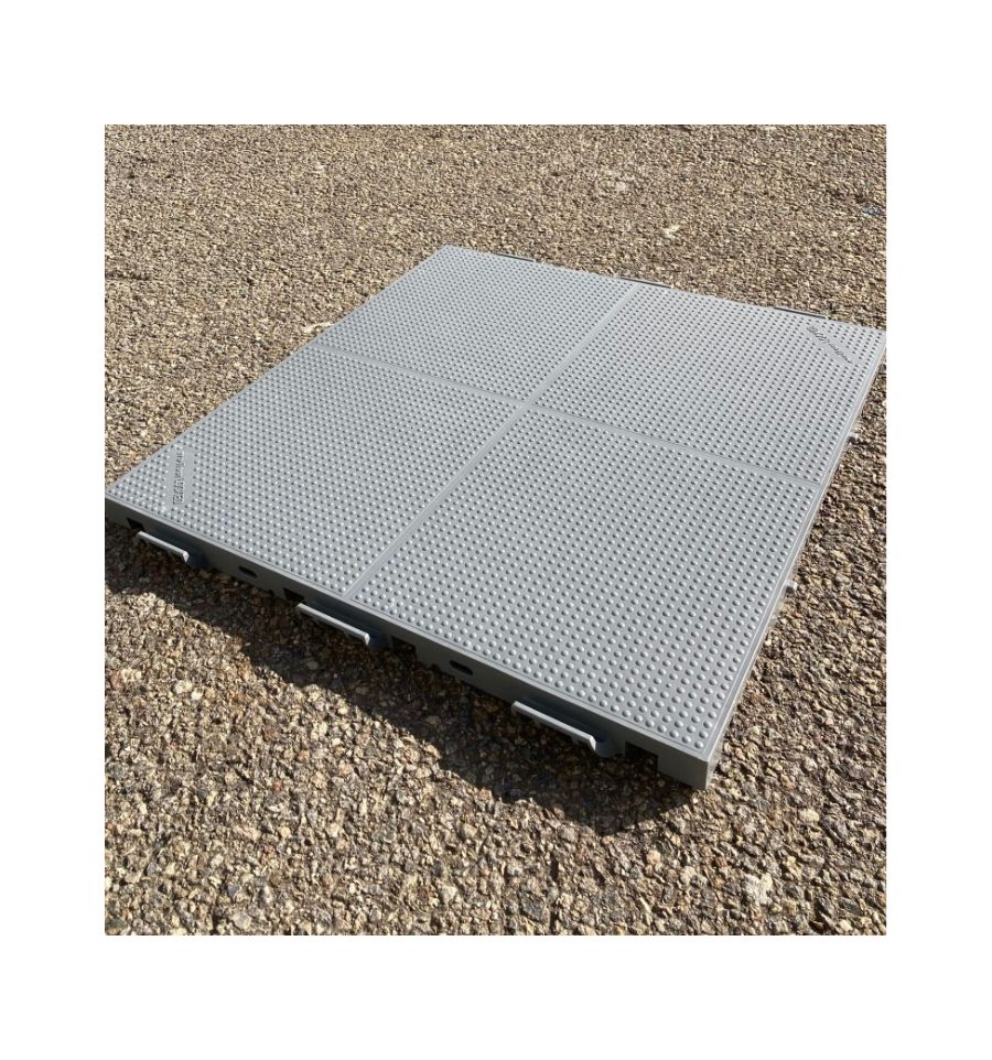 Idéales pour des événements, ces dalles événementielles peuvent être utilisées aussi bien en intérieur qu'en extérieur. Elles se posent très facilement en s'emboîtant, sans aucun outil nécessaire. Ces dalles, fabriquées en polypropylène ou polypropylène recyclé, peuvent supporter jusqu'à 130 tonnes par m². Elles sont disponibles en version pleine ou perforée, en noir ou en gris.