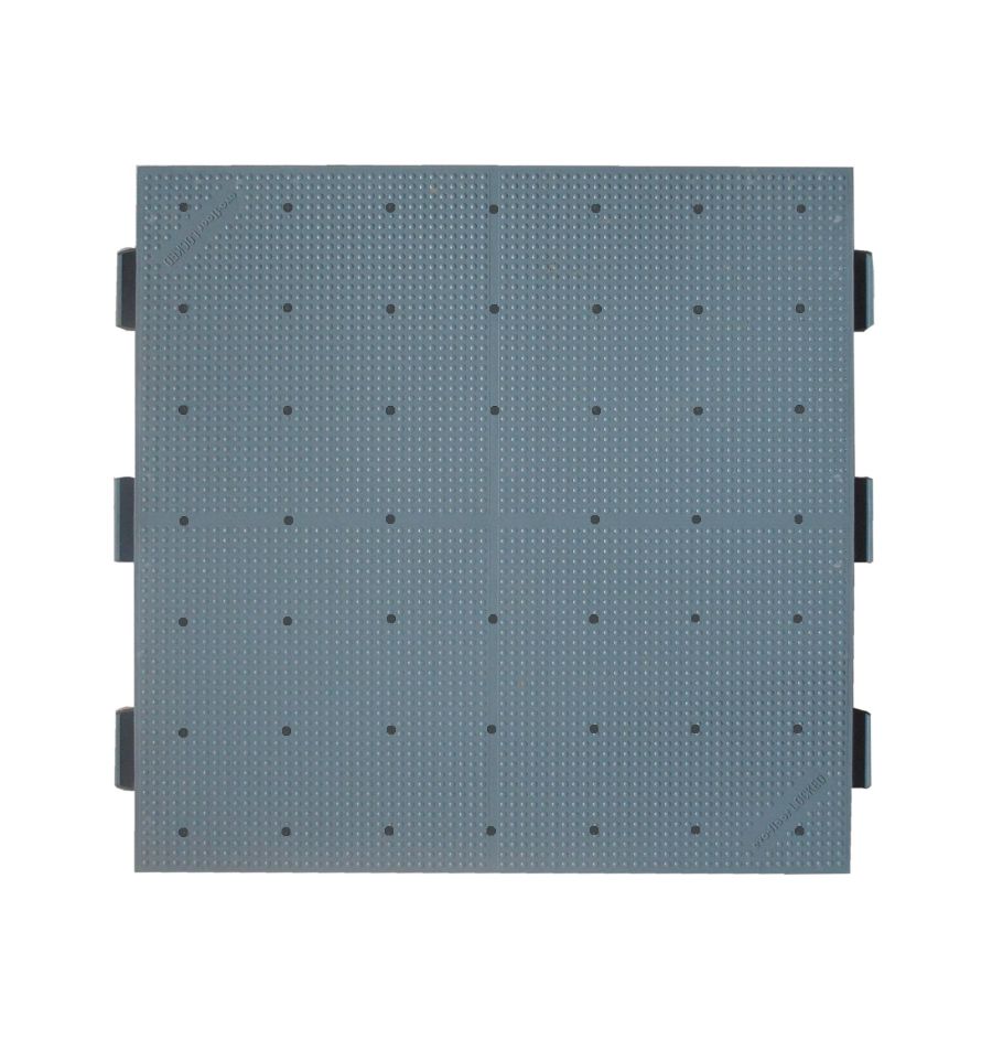 Le produit est disponible en plusieurs versions pour s'adapter à votre environnement : surface pleine ou surface perforée, version recyclée ou non recyclée. La surface pleine se prête plutôt à un usage en intérieur, comme pour un salon professionnel, tandis que la version perforée est recommandée pour un usage en extérieur, car elle permet d'évacuer l'eau s'il pleut. Techniquement, les versions recyclées et non recyclées sont les mêmes, elles supportent la même charge. Le produit recyclé est plus mat.
