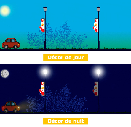 Conçue dans un souci d'économie d'énergie, ce Panneau de Noël rétroréfléchissant recto-verso apporte une ambiance festive et chaleureuse à votre ville ou commune. En effet, grâce à sa technologie rétroréfléchissante, elle offre une esthétique lumineuse la nuit tout en présentant un motif élégant le jour. Il s'agit d'une solution unique et magique pour illuminer vos rues et espaces publics pendant les festivités de fin d'année sans dépenser le moindre kilowatt d'électricité.