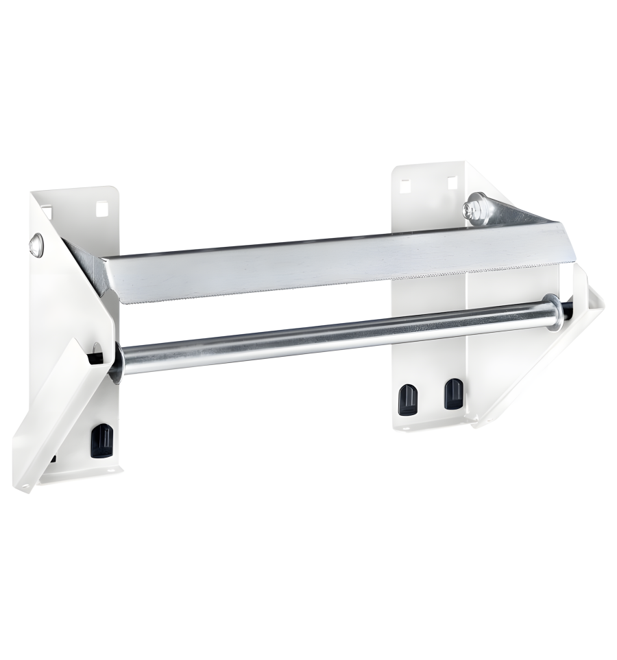 - Le porte-rouleaux papiers. D’une longueur de 415 mm, il permet de supporter des rouleaux de papier d’essuyage industriel.