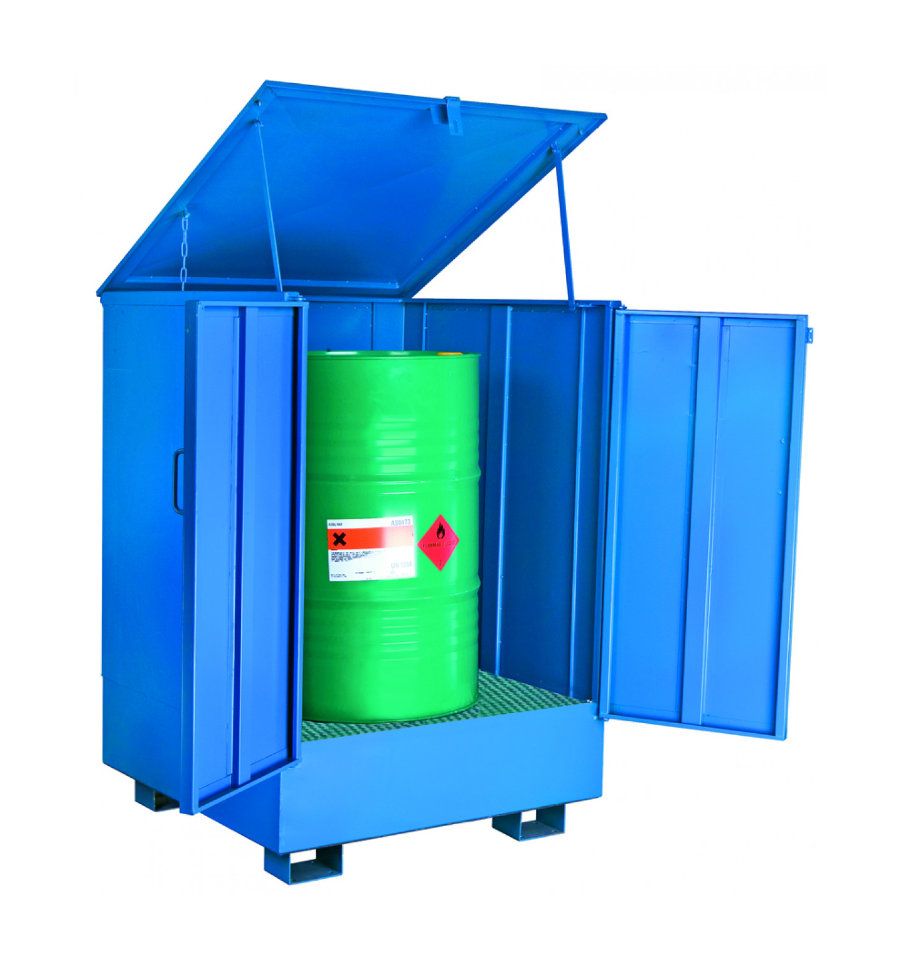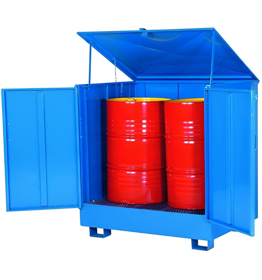 Ce bac de rétention fermé en acier vous apporte sécurité grâce à ses portes et son toit battants. Muni d’un cadenas, il peut être mis en extérieur.
