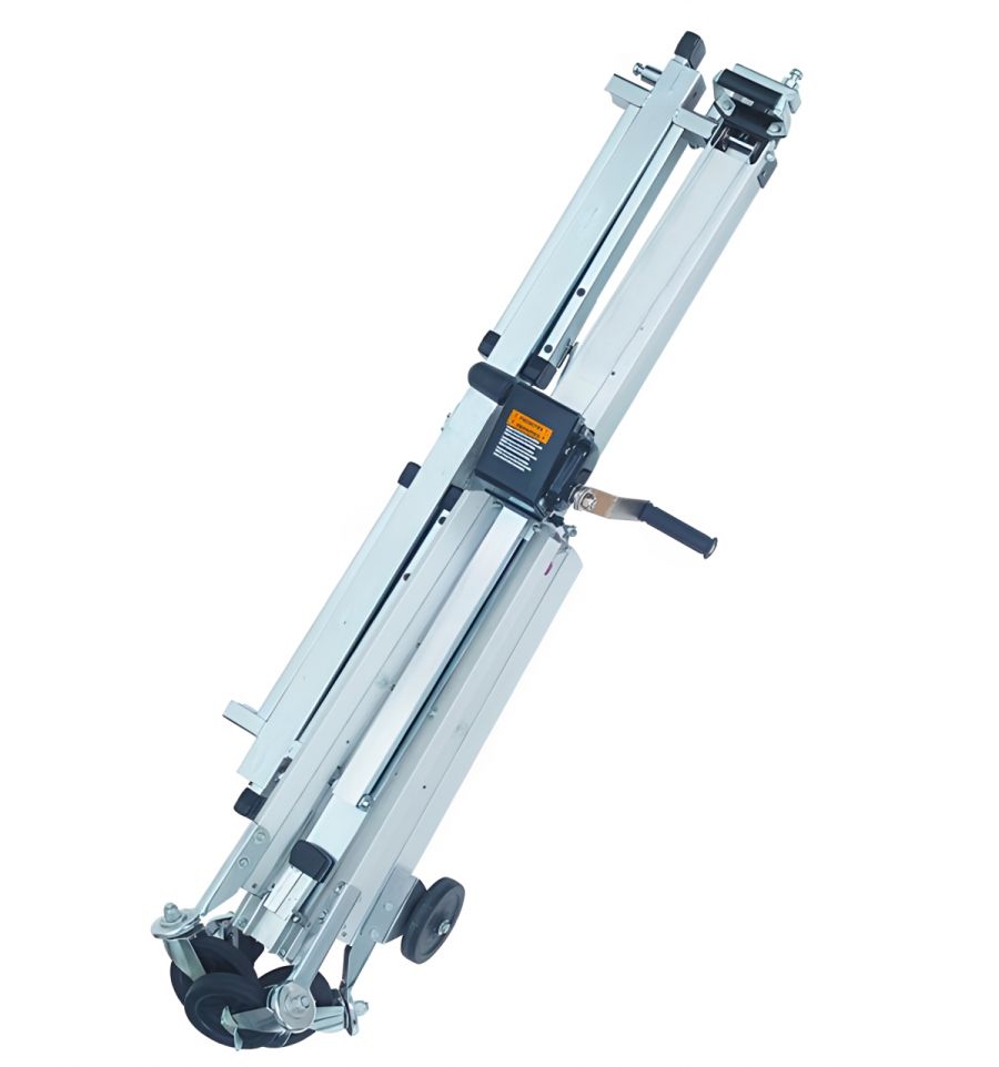 Il est équipé de deux roues de transport ainsi que d'une poignée pour faciliter son transport sur les chantiers ou dans les escaliers. Une fois plié, sa petite taille lui permet de rentrer sans encombre dans une voiture ou un véhicule utilitaire.