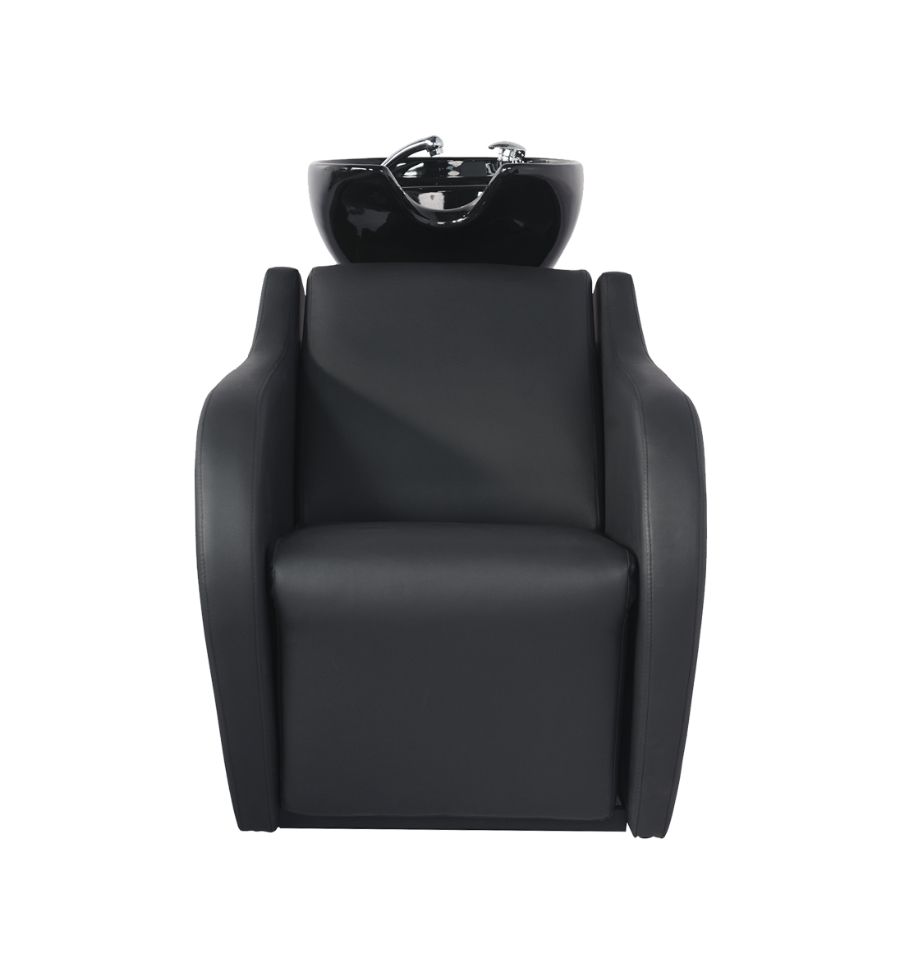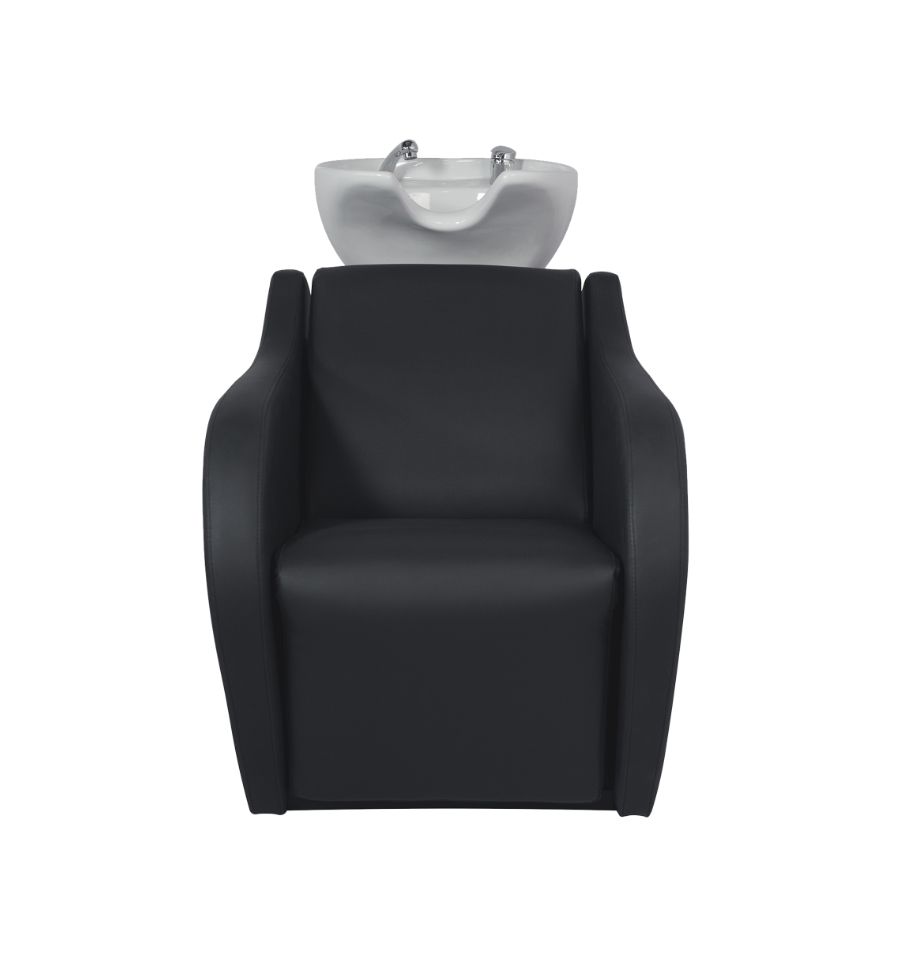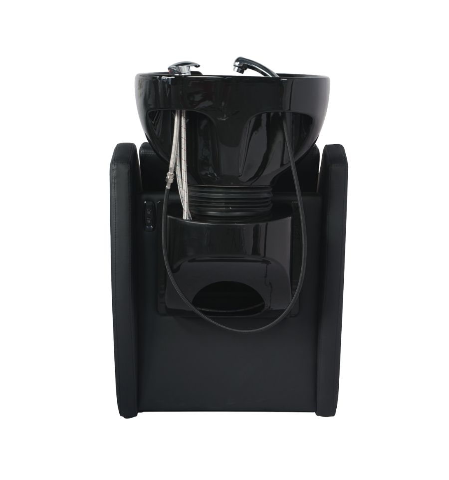 Ce bac à shampoing est conçu pour être ergonomique, sophistiqué et facile à entretenir. Le fauteuil a un revêtement en PVC simili cuir noir qui offre un aspect luxueux tout en étant simple à entretenir. La vasque est en céramique, pensée pour un soutien optimal du cou et de la tête, assurant une position agréable pour réaliser vos shampoings ou vos soins.