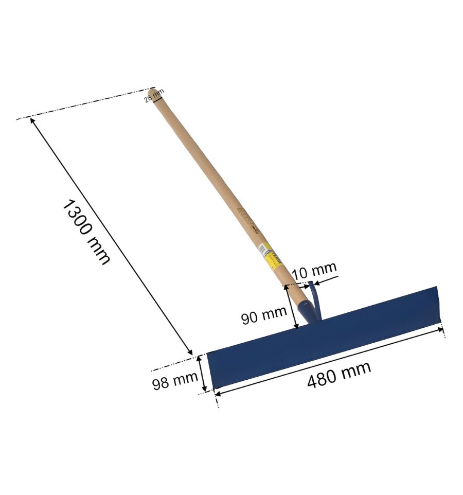 L'épandeur à béton possède un manche de 1300 mm en bois dur poncé, qui assure une bonne prise en main et réduit la fatigue du dos et des bras lors d'une utilisation prolongée.