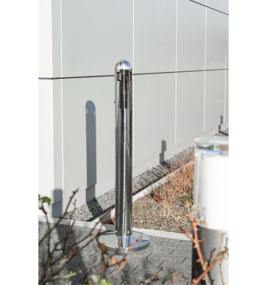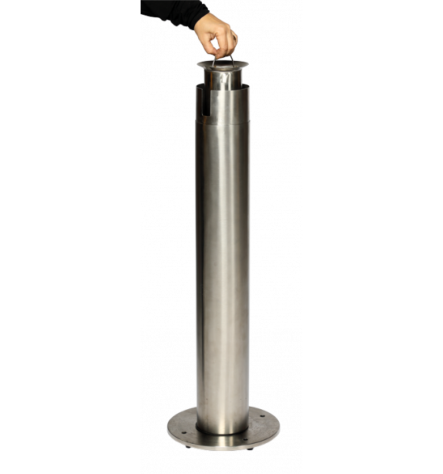 Les deux cendriers en acier inoxydable sont équipés d'une plaque d'écrasement pour les mégots. Les cigarettes sont ensuite jetées dans le bac intérieur du cendrier. Ce bac est amovible ce qui permet de le vider proprement et facilement dans une poubelle