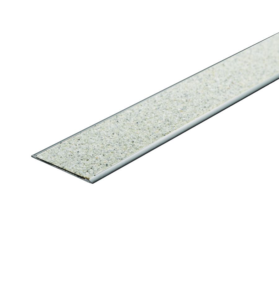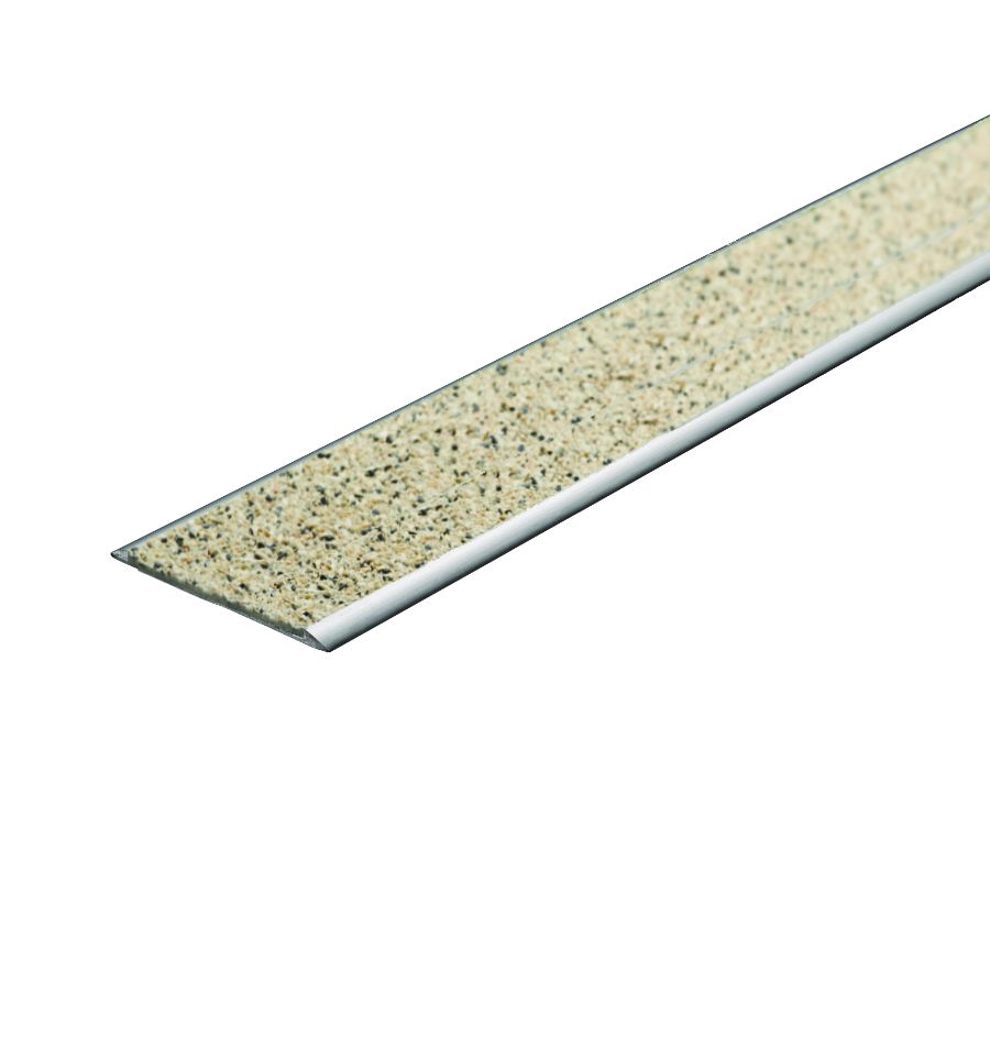 Nez de marche 3 m plat en aluminium et granulats de marbre antidérapants de largeur 39 ou 59 mm. Installation extérieure.