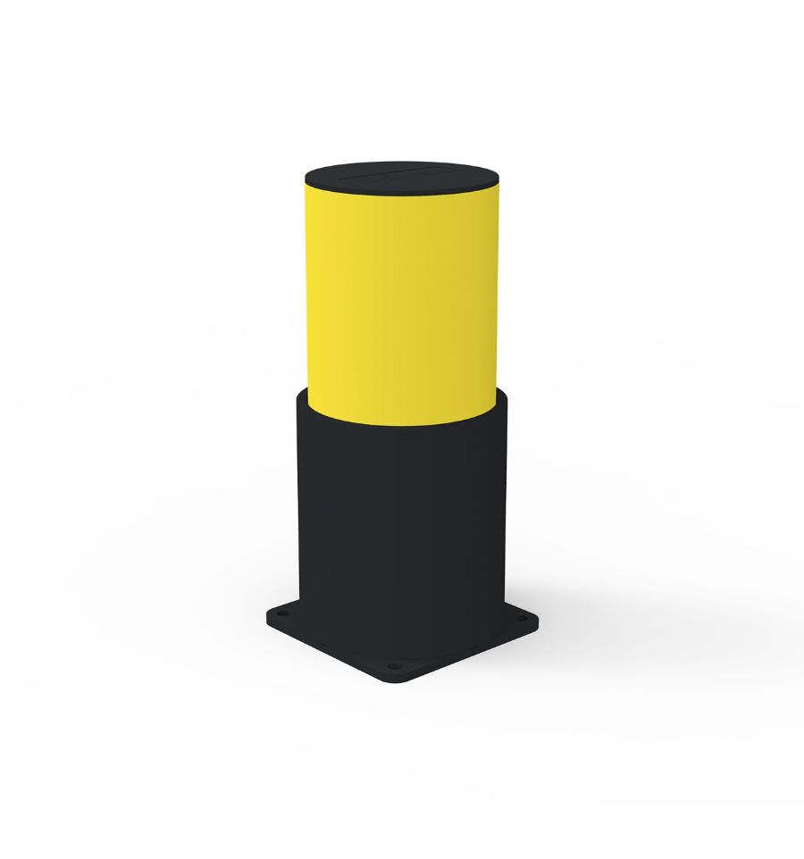 Pour plus de sécurité sur les zones à fort trafic, optez, en option, pour la manchette mobile. Cette dernière protège le bas de la borne et permet d'absorber davantage les chocs. Elle dévie l'énergie des chocs en tournant légèrement lors d'un impact, ce qui réduit la violence de la collision. En limitant le choc sur la borne et ses fixations elle prolonge l'installation de la borne mémoire de forme sur les zones à fort trafic.