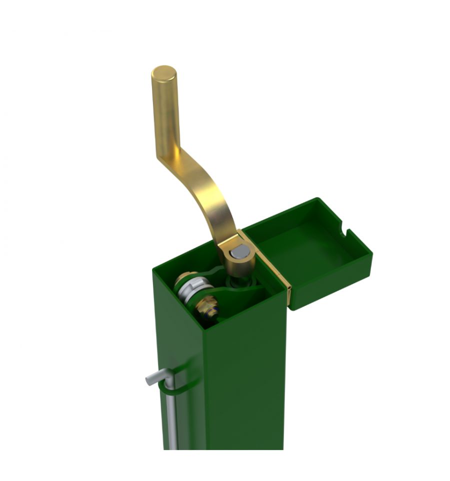 Ce système de poteaux a une fixation par ancrage au sol, le système de tension se trouve à l'intérieur des poteaux. Le système de treuil interne donne au produit une finition propre. Ils possèdent un espace de rangement interne pour la manivelle.