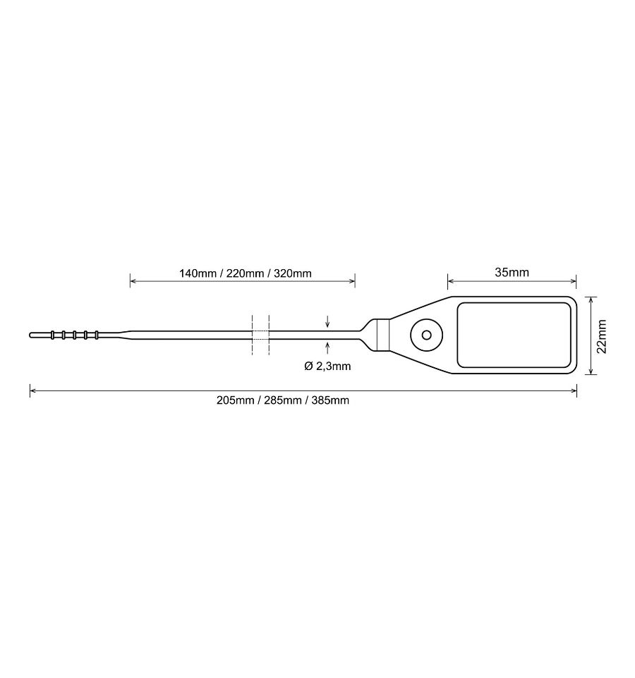 Grâce à sa tige fine de 2,3 mm, ce scellé de sécurité plastique avec insert métallique personnalisable est conçu pour les petites ouvertures.