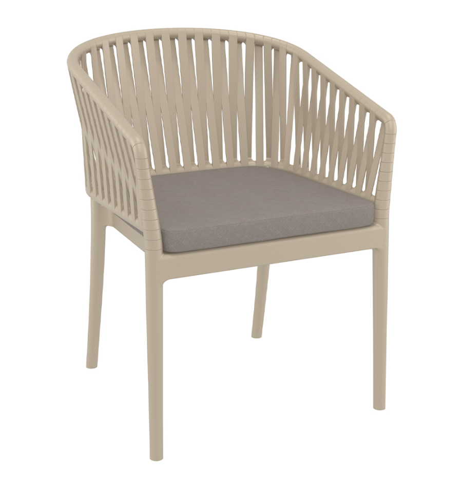Disponible en 3 couleurs, ce fauteuil s'adapte facilement à tout type de décor extérieur. Le cousin taupe ajoute une touche de raffinement et de douceur, s'intégrant parfaitement à votre aménagement extérieur.