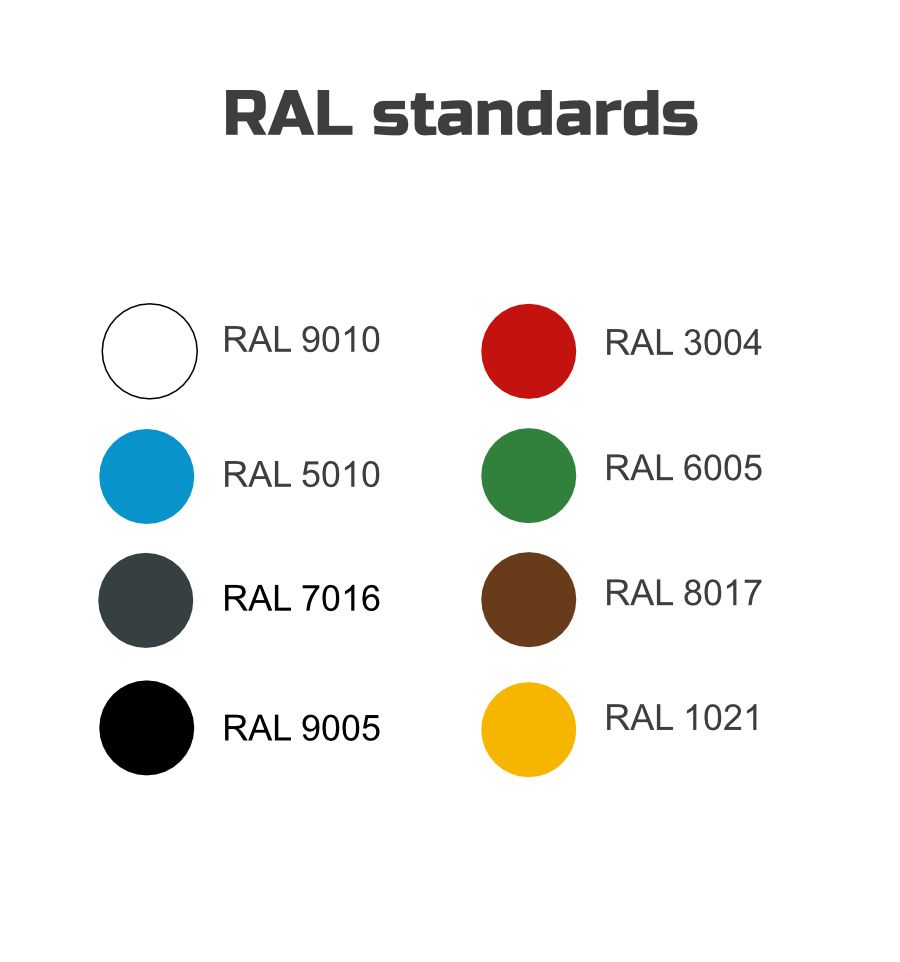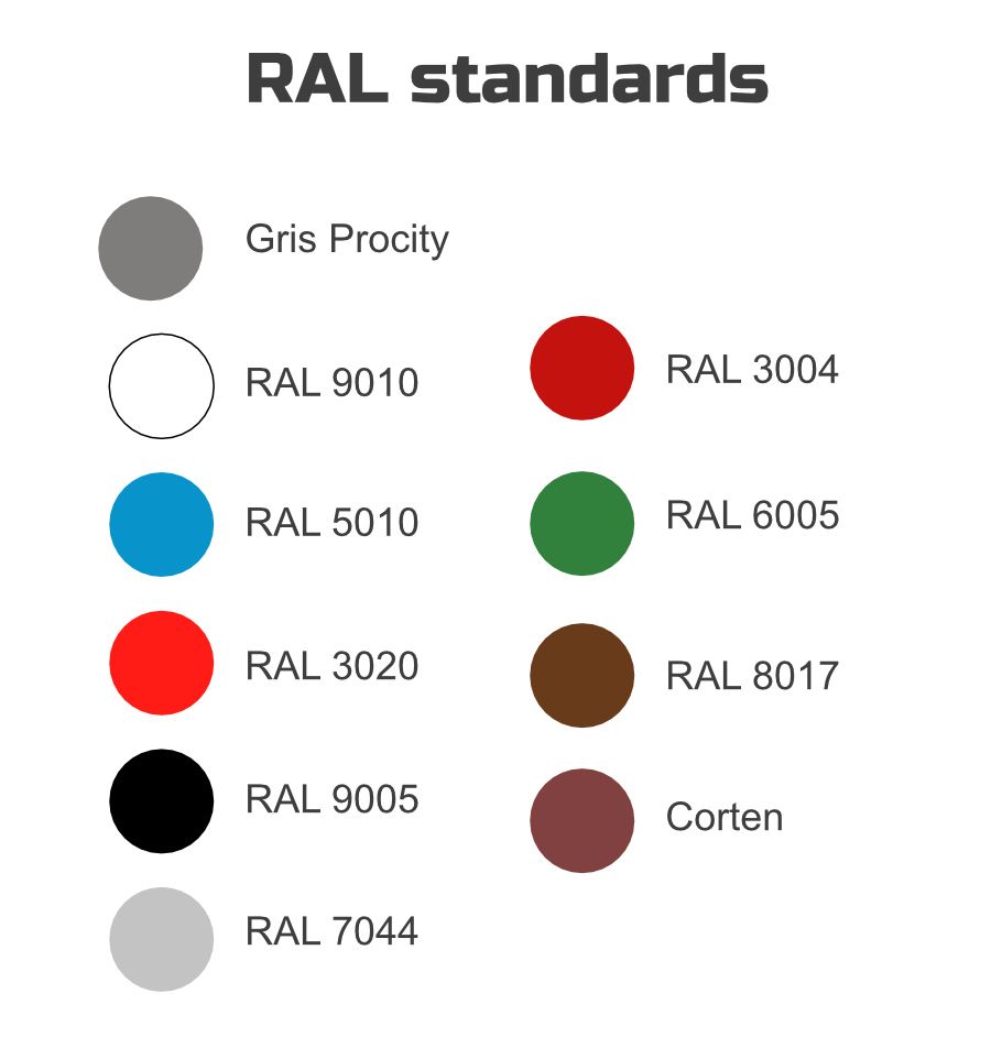 Il est possible de choisir la finition thermolaquage dans une couleur du RAL (à préciser dans le champ "PERSONNALISATION" au moment de l'ajout au panier).