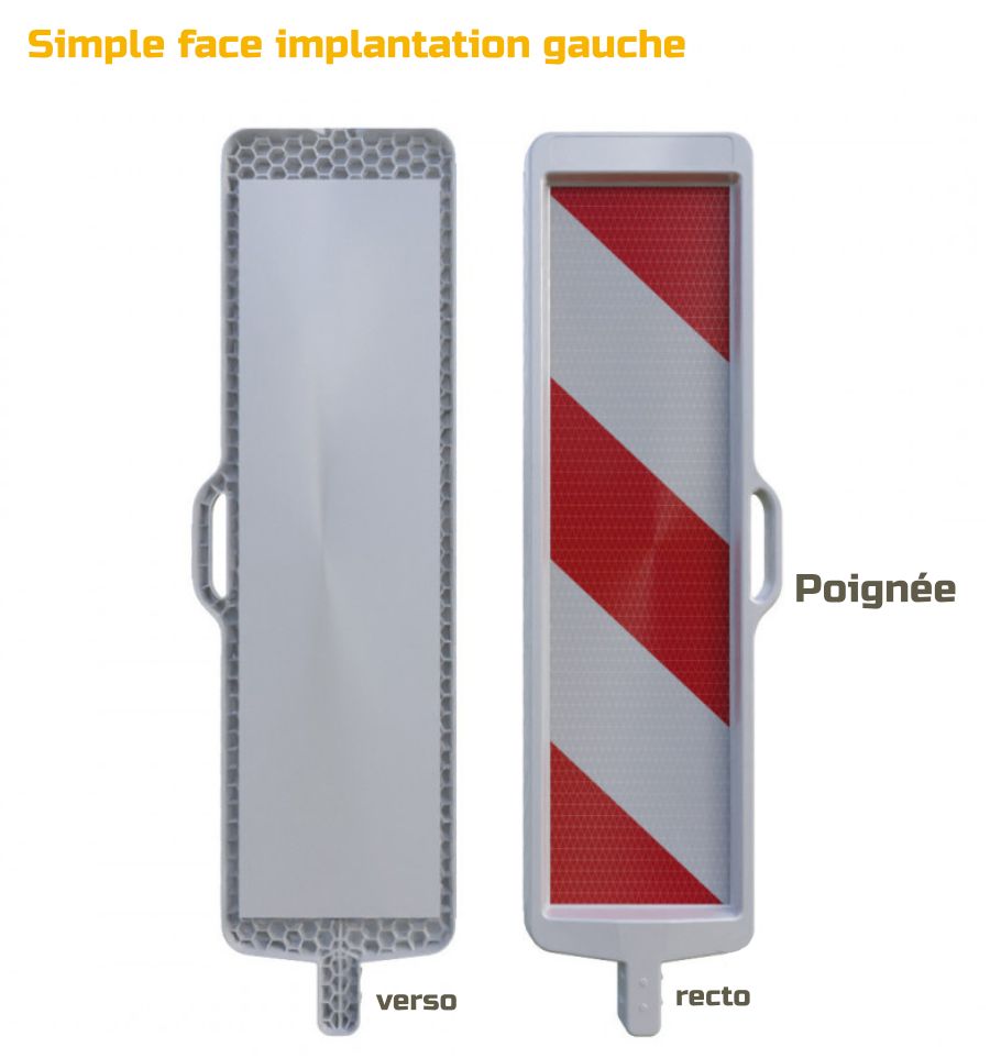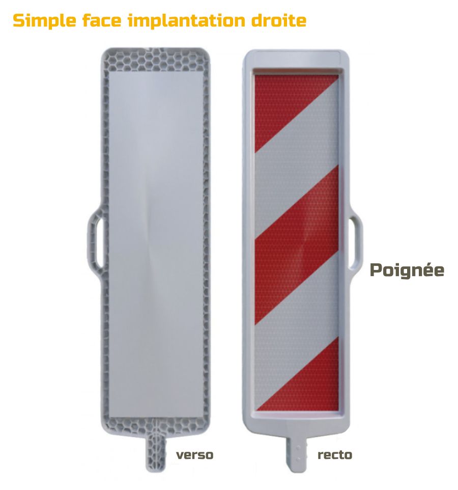 | Balise simple face droite | Blanche | H. 1350 x l. 360 mm | Oui | 60 x 60 mm |