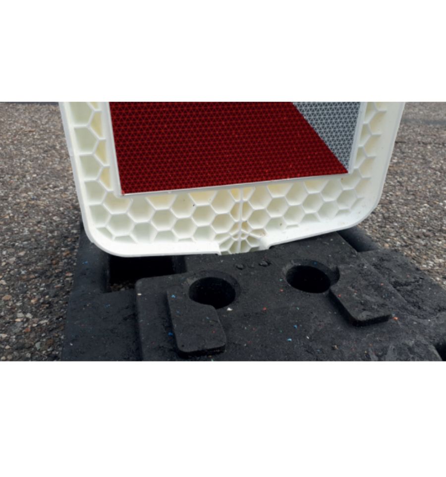 La balise est livrée avec ou sans support plastobloc de 25 kg (à choisir lors de la commande). Le plastobloc permet d'accueillir le pied 40 x 40 mm de la balise.