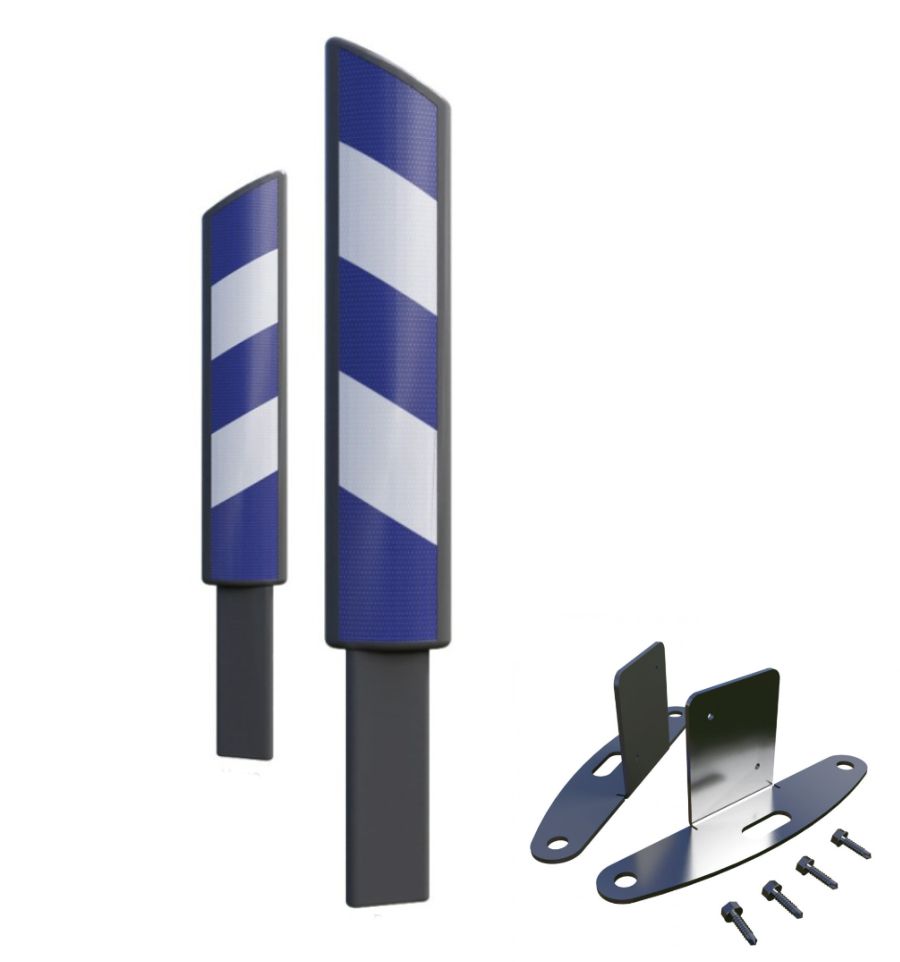 - Film rétro-réfléchissant de classe 2 simple ou double-face (bandes obliques bleues et blanches à 30°)
