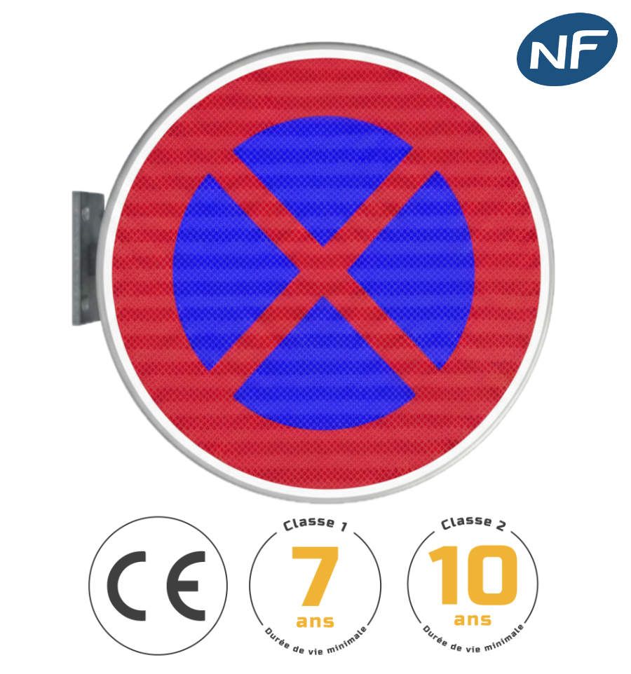 Balise murale de type B6D en kit complet (panneau, fixation, brides) donne une interdiction d'arrêt et de stationnement.