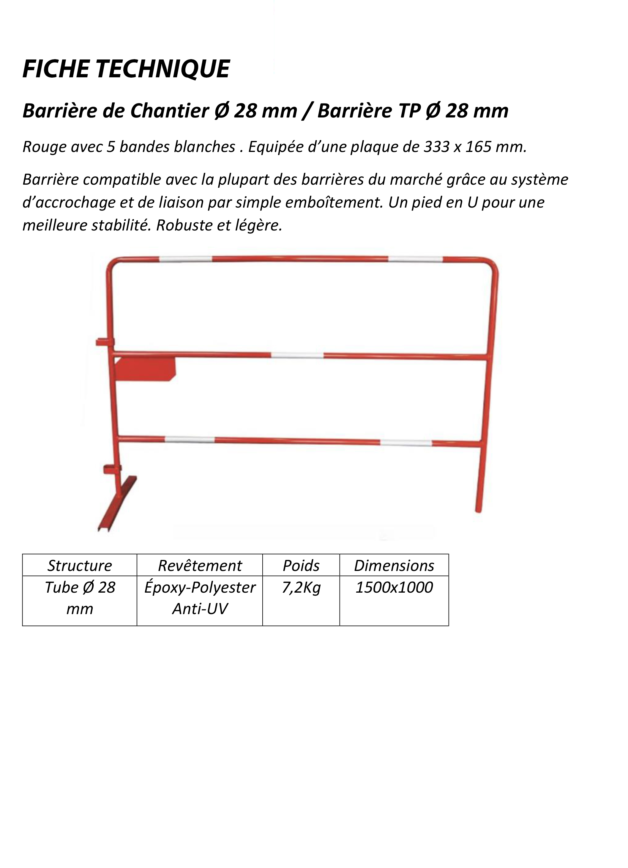 Fiche Technique Barrière 28 mm