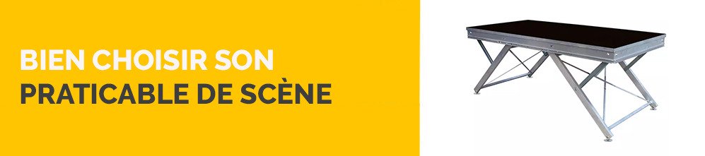 Le visuel est aussi un critère à prendre en compte dans votre choix. Par exemple, si vous souhaitez un praticable équipé d'une jupe pour cacher ses pieds, c'est possible en choisissant le praticable pour scène ou le praticable scène d'angle (plus de détails dans le tableau ci-dessous).
