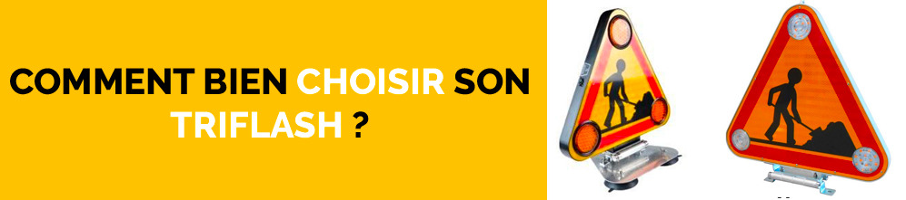 Un triflash est un triangle de chantier lumineux doté de 3 LED dans ses angles. Dans le langage commun, le mot triflash désigne un panneau AK5 (panneaux de chantier travaux) lumineux grâce à 3 LED, qui se place sur le toit d’un véhicule de chantier. Cependant, le triflash peut également être posé sur le bord de la chaussée. Le logo affiché sur le triflash LED peut varier. Au lieu du logo AK5, il est possible d’afficher le logo AK14 (point d’exclamation ⚠️).