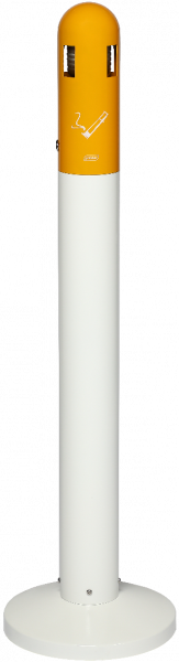 Le cendrier ludique en forme de cigarette et aux couleurs blanche et orange attire le regard des potentiels utilisateurs. Il est fabriqué en acier galvanisé avec une finition époxy. Pour jeter son mégot, l'utilisateur doit écraser sa cigarette sur la plaque d'écrasement pour ensuite le jeter dans le cendrier. Les mégots atterrissent dans un bac intérieur amovible. Le cendrier ludique possède un entonnoir intérieur pour étouffer la fumée plus rapidement. |
