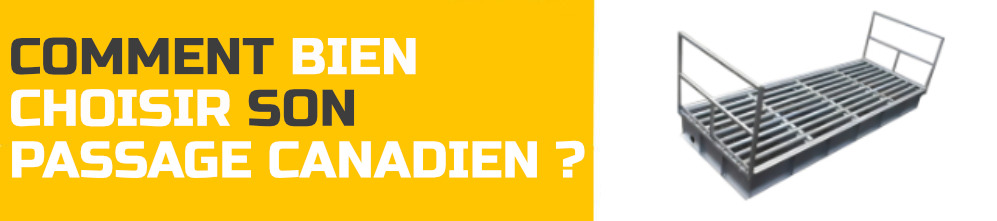 Le passage canadien, aussi appelé barrière canadienne, permet aux piétons, vélos, véhicules et engins agricoles de traverser une route ou une clôture, tout en dissuadant les animaux de faire de même.