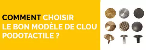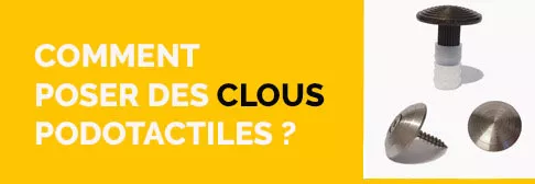Veillez à choisir des clous podotactiles conformes à la norme française NF P98-351. Une fois installés, ces clous forment une bande d'éveil à la vigilance (BEV) destinée à aider les personnes aveugles. Cette bande podotactile doit notamment être implantée en haut de chaque volée d'escalier ou palier intermédiaire dans un espace public.