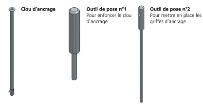 - Clous d'ancrage 350 mm : pour ancrage dans l'asphalte ou lorsqu'il y a présence de réseaux souterrains