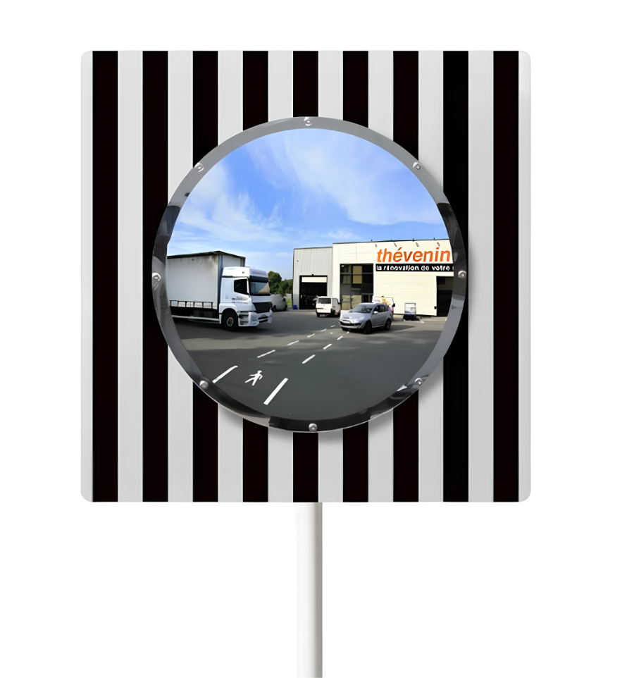 Miroir de circulation routière rond de diamètre 600 mm convexe permet une vision à 90°. Ce type de miroir permet d'optimer la vision et la sécurité sur voies publiques (carrefours, intersections dangereuses en agglomération, traversée des piétons sur passages protégés...)