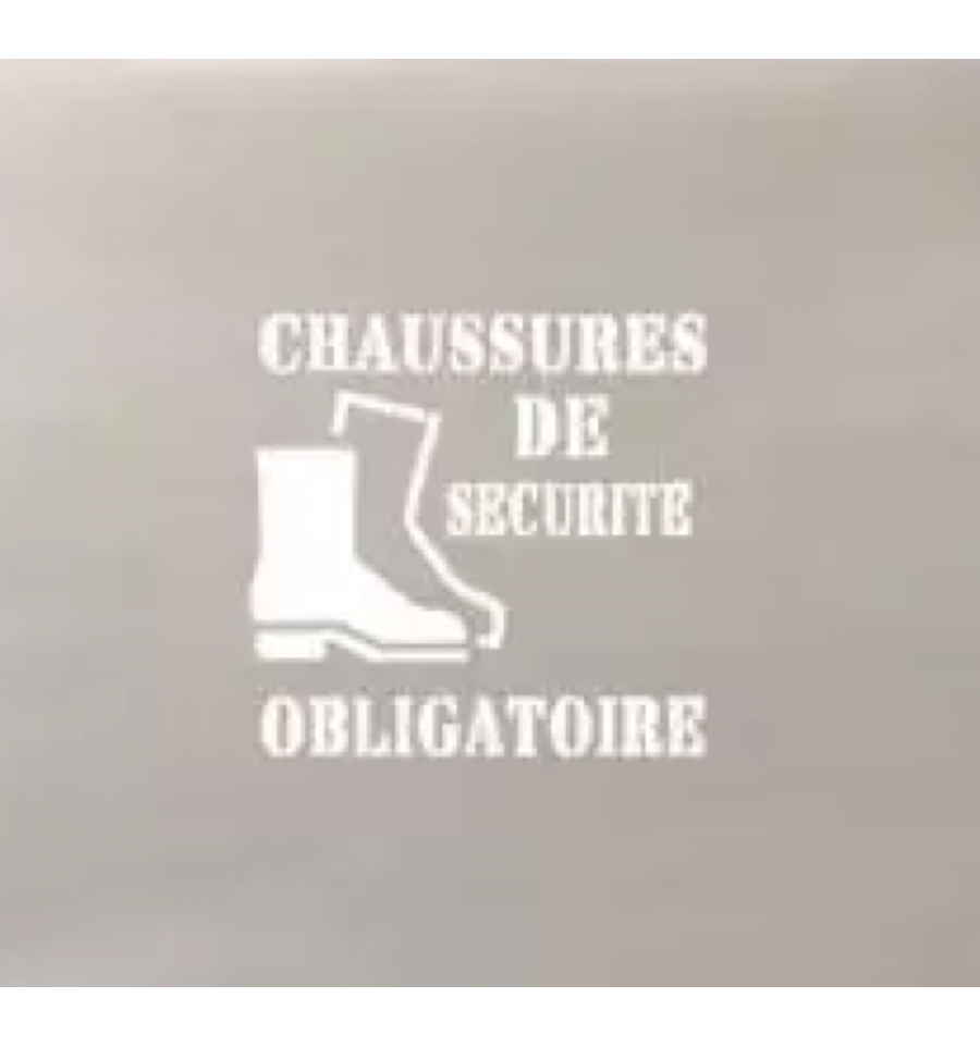 Vous avez une question à propos du produit Pochoir port des chaussures de sécurité obligatoire avec texte ?