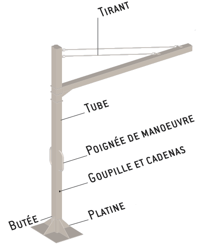 Un camion de pompiers peut avoir le besoin spécifique d'accéder à la zone du portique, les pieds rotatifs, munis de poignées, sont parfaitement adaptés à la situation. En effet, ils permettent d'ouvrir la voie dans un délai très court, sans avoir à se placer sur la voie pour le faire.