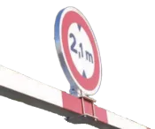 Fabriqué en acier laqué blanc sur galva avec bandes rouges rétro-réfléchissantes, sa hauteur varie de 1,9 à 3,5 mètres.