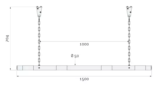 - Accrochage avec chaînes, anneaux et étrier de fixation fournis