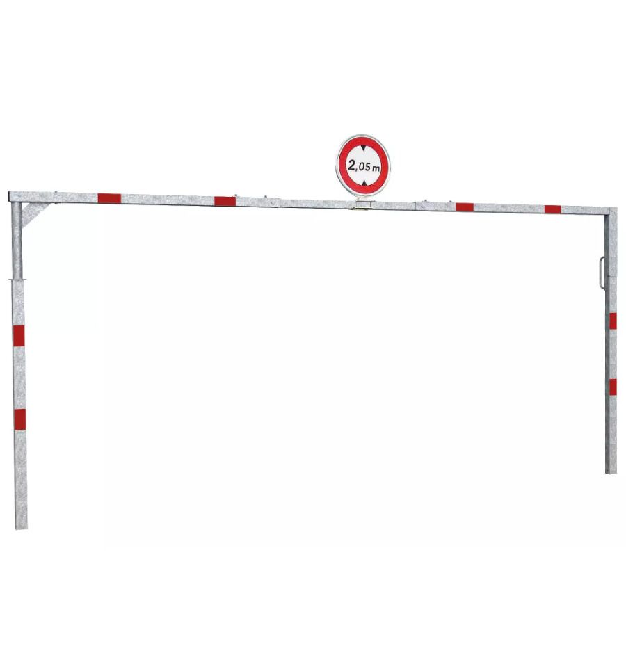 Le portique pivotant parking est utilisé pour contrôler la hauteur des voitures et camions entrants dans les parkings. La fermeture se fait à l'aide d'un cadenas.