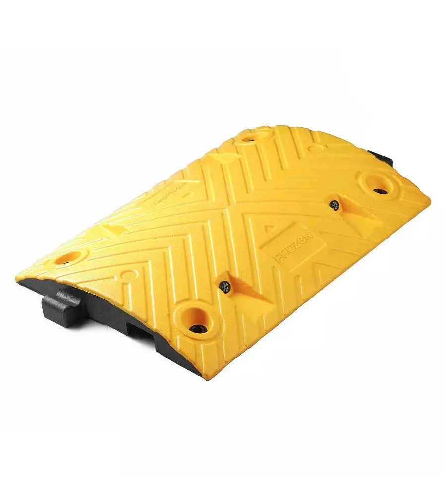 Ce ralentisseur jaune et noir est fabriqué PVC haute résistance. Il est composé d'éléments centraux et de demi-ronds (si vous souhaitez avoir des embouts).