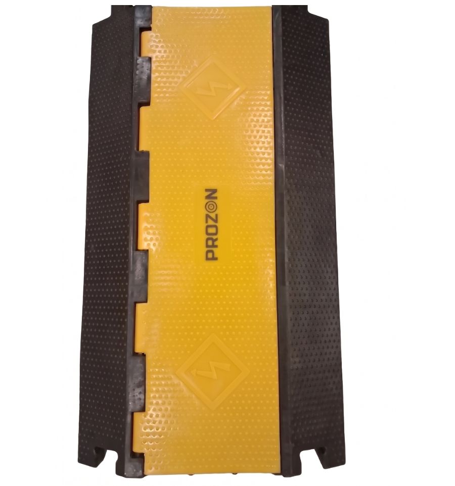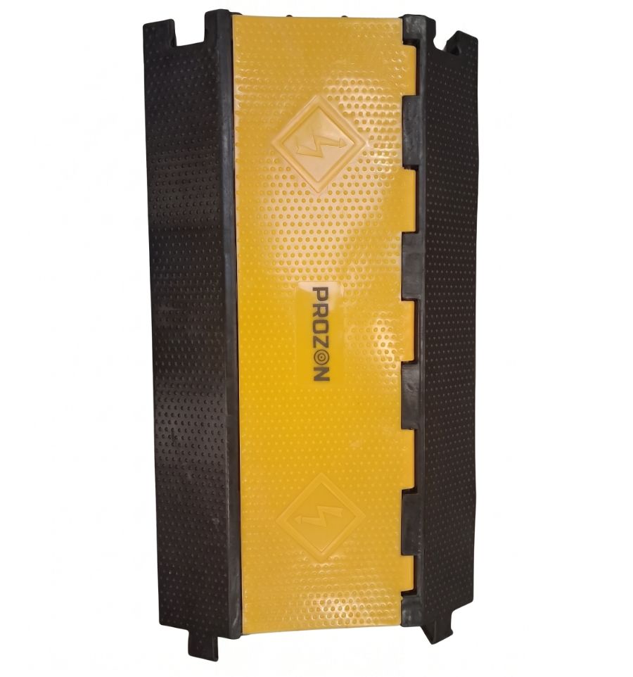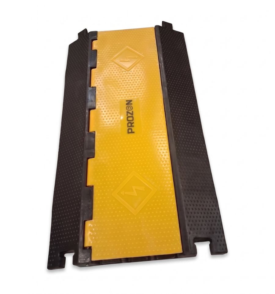 Le ralentisseur passe câble est idéal dans les salons, festivals et autres manifestations éphémères. Il est aussi adapté aux zones de chantiers. Le ralentisseur passe câbles est composé de bord en caoutchouc vulcanisé de couleur noire et d'un capot pivotant de couleur jaune en polyéthylène. La couleur jaune et vive du capot permet aux usagers de voir le passe-câble de jour comme de nuit.